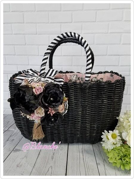 ブラックカラーのカゴバッグに、ピンク&ブラックで大人エレガンスです。