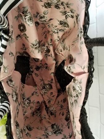 バッグの中身が見えないようにローズ柄の布がつけてあります。