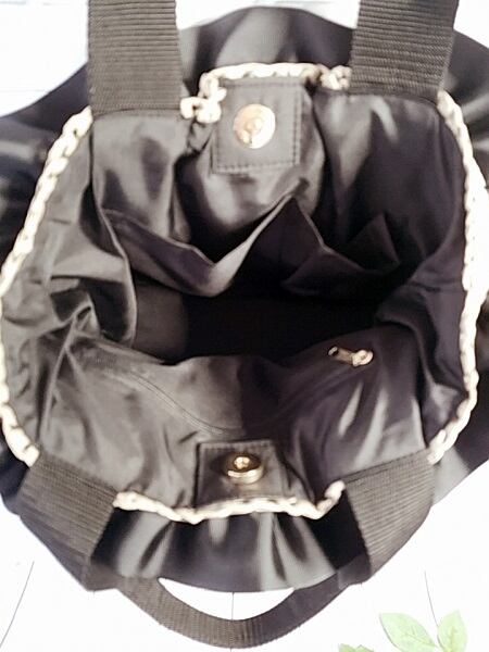 内側は携帯や定期などのポケットとファスナーのポケットもついてます。