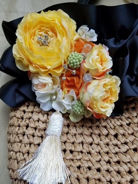 ◎バッグと花の部分は直接接着せず花の土台をワイヤーで止めてあります。ハンドメイド品である事をご理解頂ける方のご購入をお願いします。